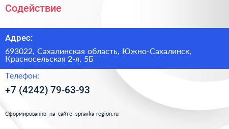 Содействие по адресу 693022, Сахалинская область, Южно-Сахалинск, Красносельская 2-я, 5Б в дальнейшем Организация, размещена в следующих категориях: