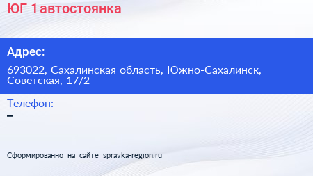 ЮГ-1, автостоянка по адресу 693022, Сахалинская область, Южно-Сахалинск, Советская, 17/2 в дальнейшем Организация, размещена в следующих категориях: