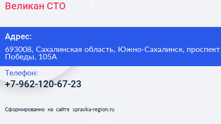 Великан, СТО по адресу 693008, Сахалинская область, Южно-Сахалинск, проспект Победы, 105А в дальнейшем Организация, размещена в следующих категориях: