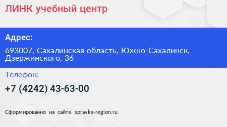 ЛИНК, учебный центр по адресу 693007, Сахалинская область, Южно-Сахалинск, Дзержинского, 36 в дальнейшем Организация, размещена в следующих категориях: