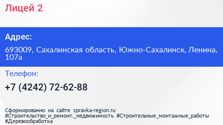 Лицей №2 по адресу 693009, Сахалинская область, Южно-Сахалинск, Ленина, 107а в дальнейшем Организация, размещена в следующих категориях: