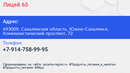 Лицей №65 по адресу 693009, Сахалинская область, Южно-Сахалинск, Коммунистический проспект, 72 в дальнейшем Организация, размещена в следующих категориях: