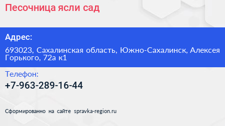 Песочница, ясли-сад по адресу 693023, Сахалинская область, Южно-Сахалинск, Алексея Горького, 72а к1 в дальнейшем Организация, размещена в следующих категориях: