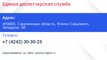 Единая диспетчерская служба по адресу 693005, Сахалинская область, Южно-Сахалинск, Западная, 58 в дальнейшем Организация, размещена в следующих категориях: