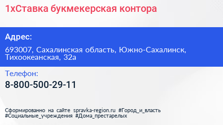 1xСтавка, букмекерская контора по адресу 693007, Сахалинская область, Южно-Сахалинск, Тихоокеанская, 32а в дальнейшем Организация, размещена в следующих категориях: