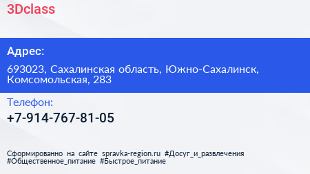 3Dclass по адресу 693023, Сахалинская область, Южно-Сахалинск, Комсомольская, 283 в дальнейшем Организация, размещена в следующих категориях: