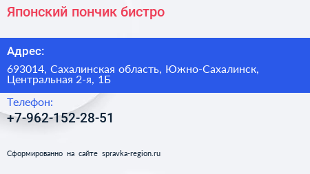 Японский пончик, бистро по адресу 693014, Сахалинская область, Южно-Сахалинск, Центральная 2-я, 1Б в дальнейшем Организация, размещена в следующих категориях: