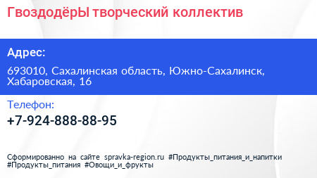 ГвоздодёрЫ, творческий коллектив по адресу 693010, Сахалинская область, Южно-Сахалинск, Хабаровская, 16 в дальнейшем Организация, размещена в следующих категориях:
