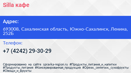 Silla, кафе по адресу 693008, Сахалинская область, Южно-Сахалинск, Ленина, 252Б в дальнейшем Организация, размещена в следующих категориях: