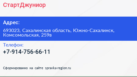 СтартДжуниор по адресу 693023, Сахалинская область, Южно-Сахалинск, Комсомольская, 259в в дальнейшем Организация, размещена в следующих категориях:
