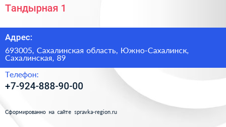 Тандырная №1 по адресу 693005, Сахалинская область, Южно-Сахалинск, Сахалинская, 89 в дальнейшем Организация, размещена в следующих категориях: