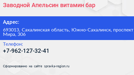 Заводной Апельсин, витамин-бар по адресу 693013, Сахалинская область, Южно-Сахалинск, проспект Мира, 306 в дальнейшем Организация, размещена в следующих категориях: