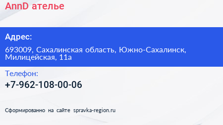 AnnD, ателье по адресу 693009, Сахалинская область, Южно-Сахалинск, Милицейская, 11а в дальнейшем Организация, размещена в следующих категориях: