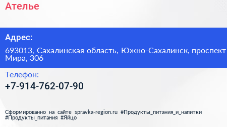 Ателье по адресу 693013, Сахалинская область, Южно-Сахалинск, проспект Мира, 306 в дальнейшем Организация, размещена в следующих категориях: