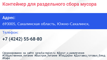 Контейнер для раздельного сбора мусора по адресу 693005, Сахалинская область, Южно-Сахалинск, в дальнейшем Организация, размещена в следующих категориях:
