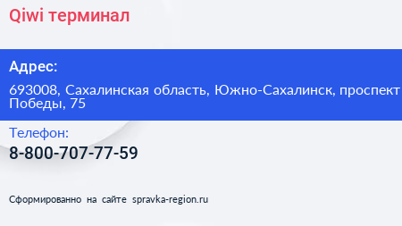 Qiwi, терминал по адресу 693008, Сахалинская область, Южно-Сахалинск, проспект Победы, 75 в дальнейшем Организация, размещена в следующих категориях: