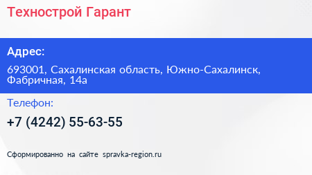Технострой-Гарант по адресу 693001, Сахалинская область, Южно-Сахалинск, Фабричная, 14а в дальнейшем Организация, размещена в следующих категориях: