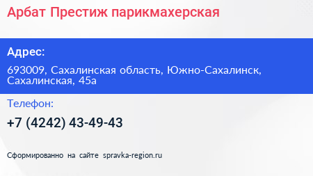 Арбат Престиж, парикмахерская по адресу 693009, Сахалинская область, Южно-Сахалинск, Сахалинская, 45а в дальнейшем Организация, размещена в следующих категориях: