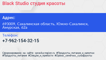 Black Studio, студия красоты по адресу 693009, Сахалинская область, Южно-Сахалинск, Амурская, 62а в дальнейшем Организация, размещена в следующих категориях: