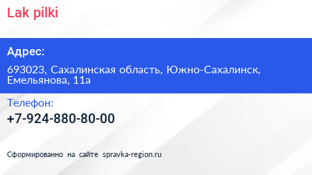 Lak & pilki по адресу 693023, Сахалинская область, Южно-Сахалинск, Емельянова, 11а в дальнейшем Организация, размещена в следующих категориях: