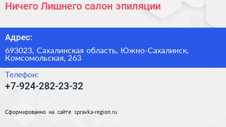 Ничего Лишнего, салон эпиляции по адресу 693023, Сахалинская область, Южно-Сахалинск, Комсомольская, 263 в дальнейшем Организация, размещена в следующих категориях: