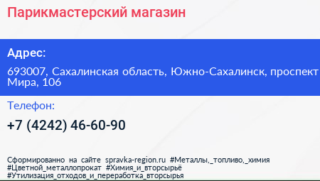 Парикмастерский магазин по адресу 693007, Сахалинская область, Южно-Сахалинск, проспект Мира, 106 в дальнейшем Организация, размещена в следующих категориях: