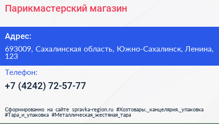 Парикмастерский магазин по адресу 693009, Сахалинская область, Южно-Сахалинск, Ленина, 123 в дальнейшем Организация, размещена в следующих категориях: