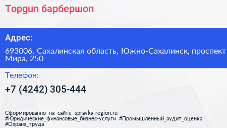 Topgun, барбершоп по адресу 693006, Сахалинская область, Южно-Сахалинск, проспект Мира, 250 в дальнейшем Организация, размещена в следующих категориях: