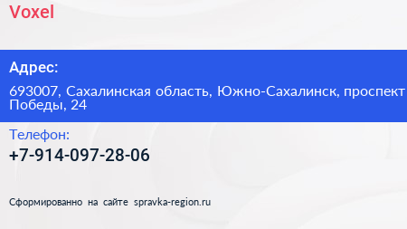 Voxel по адресу 693007, Сахалинская область, Южно-Сахалинск, проспект Победы, 24 в дальнейшем Организация, размещена в следующих категориях: