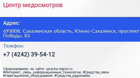Центр медосмотров по адресу 693008, Сахалинская область, Южно-Сахалинск, проспект Победы, 83 в дальнейшем Организация, размещена в следующих категориях: