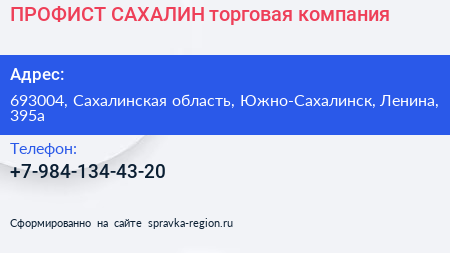 ПРОФИСТ-САХАЛИН, торговая компания по адресу 693004, Сахалинская область, Южно-Сахалинск, Ленина, 395а в дальнейшем Организация, размещена в следующих категориях: