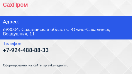 СахПром по адресу 693004, Сахалинская область, Южно-Сахалинск, Воздушная, 11 в дальнейшем Организация, размещена в следующих категориях: