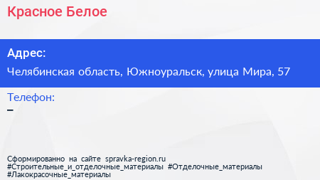 Красное & Белое по адресу Челябинская область, Южноуральск, улица Мира, 57 в дальнейшем Организация, размещена в следующих категориях: