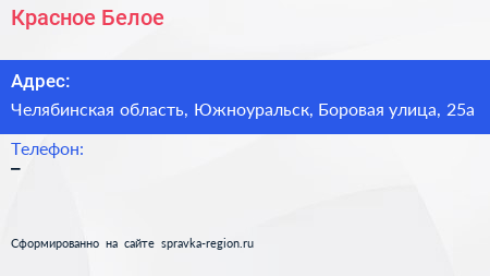 Красное&Белое по адресу Челябинская область, Южноуральск, Боровая улица, 25а в дальнейшем Организация, размещена в следующих категориях: