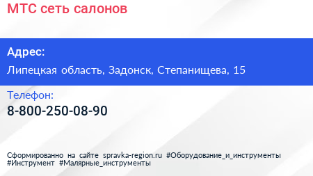 МТС, сеть салонов по адресу Липецкая область, Задонск, Степанищева, 15 в дальнейшем Организация, размещена в следующих категориях: