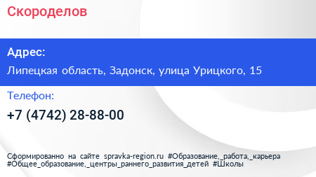 Скороделов по адресу Липецкая область, Задонск, улица Урицкого, 15 в дальнейшем Организация, размещена в следующих категориях: