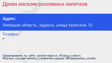 Дрова, магазин разливных напитков по адресу Липецкая область, Задонск, улица Крупской, 55 в дальнейшем Организация, размещена в следующих категориях: