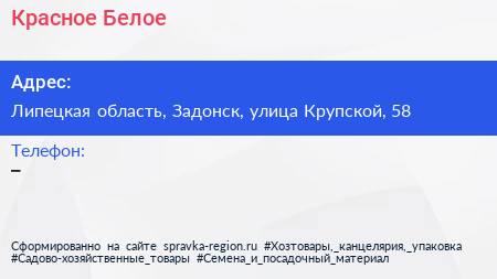 Красное & Белое по адресу Липецкая область, Задонск, улица Крупской, 58 в дальнейшем Организация, размещена в следующих категориях: