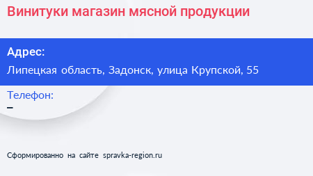 Винитуки, магазин мясной продукции по адресу Липецкая область, Задонск, улица Крупской, 55 в дальнейшем Организация, размещена в следующих категориях: