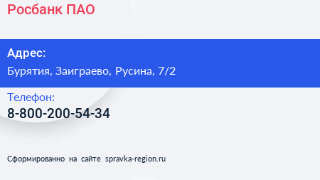 Росбанк, ПАО по адресу Бурятия, Заиграево, Русина, 7/2 в дальнейшем Организация, размещена в следующих категориях: