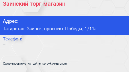Заинский торг, магазин по адресу Татарстан, Заинск, проспект Победы, 1/11а в дальнейшем Организация, размещена в следующих категориях: