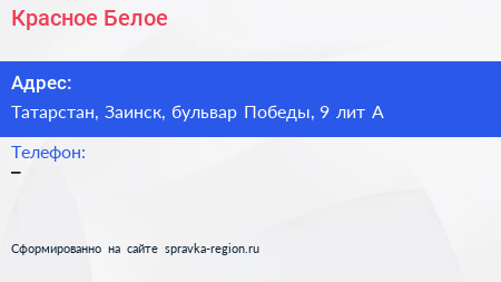Красное & Белое по адресу Татарстан, Заинск, бульвар Победы, 9 лит А в дальнейшем Организация, размещена в следующих категориях: