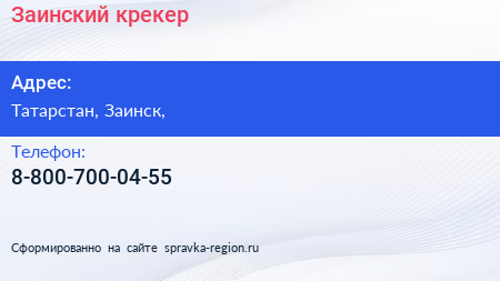 Заинский крекер по адресу Татарстан, Заинск, в дальнейшем Организация, размещена в следующих категориях: