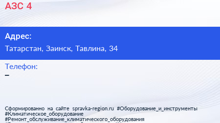 АЗС №4 по адресу Татарстан, Заинск, Тавлина, 34 в дальнейшем Организация, размещена в следующих категориях: