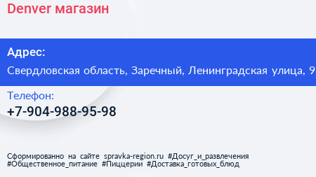 Denver, магазин по адресу Свердловская область, Заречный, Ленинградская улица, 9 в дальнейшем Организация, размещена в следующих категориях: