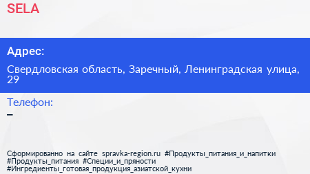 SELA по адресу Свердловская область, Заречный, Ленинградская улица, 29 в дальнейшем Организация, размещена в следующих категориях: