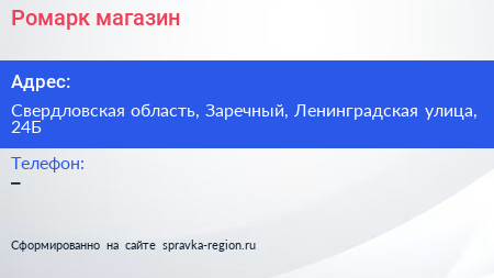 Ромарк, магазин по адресу Свердловская область, Заречный, Ленинградская улица, 24Б в дальнейшем Организация, размещена в следующих категориях: