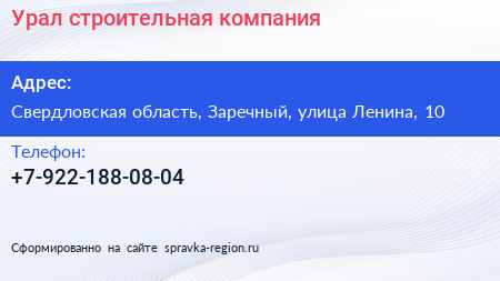 Урал, строительная компания по адресу Свердловская область, Заречный, улица Ленина, 10 в дальнейшем Организация, размещена в следующих категориях: