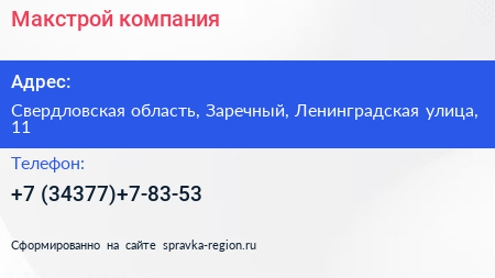 Макстрой, компания по адресу Свердловская область, Заречный, Ленинградская улица, 11 в дальнейшем Организация, размещена в следующих категориях: