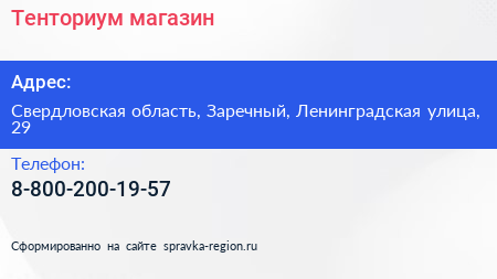 Тенториум, магазин по адресу Свердловская область, Заречный, Ленинградская улица, 29 в дальнейшем Организация, размещена в следующих категориях: